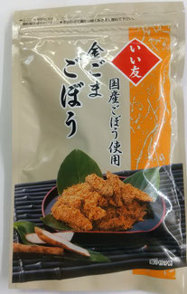 ほどよい歯応えで食物繊維たっぷりのごぼうと香り豊かな 金ごまが食欲をそそる一品です。 薄切りしたごぼうに金ごまをたっぷりと和えた醬油味ベースのごぼうの佃煮です。 ご飯、お弁当、お酒のお供、お茶漬け等にお召し上がり下さい。 ごぼう(国産)金ごま(トルコ産)醤油 砂糖 還元水飴 発酵調味料 調味料(アミノ酸等)(1部に大豆。小麦、ごまを含む) 販売者 小倉屋松柏 大阪府茨木市西駅前町4-219 製造者 有限会社いい友 東京都大田区池上4-18-1